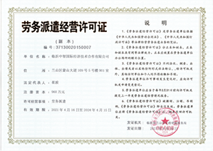 臨沂中智國(guó)際經(jīng)濟(jì)技術(shù)合作有限公司具有對(duì)外勞務(wù)合作、工程勞務(wù)施工、人力資源服務(wù)、勞務(wù)派遣等資質(zhì),并開(kāi)展相對(duì)應(yīng)的業(yè)務(wù)。是中國(guó)建筑安全協(xié)會(huì)會(huì)員單位,山東省對(duì)外投資和經(jīng)濟(jì)技術(shù)合作商會(huì)理事單位,山東省和臨沂市先進(jìn)外經(jīng)企業(yè)。